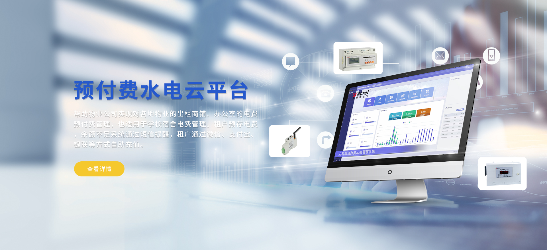 安科瑞提供的解決方案包括Acrel-EIoT能源物聯(lián)網(wǎng)云平臺、變電所運(yùn)維云平臺、安全用電管理云平臺、環(huán)保用電監(jiān)管云平臺、智慧消防云平臺、能源管理云平臺、工業(yè)企業(yè)能源管控平臺、遠(yuǎn)程預(yù)付費(fèi)云平臺、餐飲油煙監(jiān)管云平臺、電動汽車/電瓶車充電樁收費(fèi)管理云平臺、電力監(jiān)控/無線測溫系統(tǒng)、電能質(zhì)量治理系統(tǒng)、電氣火災(zāi)監(jiān)控系統(tǒng)、消防設(shè)備電源監(jiān)控系統(tǒng)、防火門監(jiān)控系統(tǒng)、應(yīng)急照明和疏散指示系統(tǒng)、智能照明控制系統(tǒng)、醫(yī)用隔離電源絕緣監(jiān)測系統(tǒng)等,幫助用戶實現(xiàn)能源智能化、可視化、精細(xì)化管理,提高用能效率和用能安全,為企業(yè)節(jié)能降耗和實現(xiàn)能源數(shù)字化建設(shè)提供數(shù)據(jù)服務(wù)。